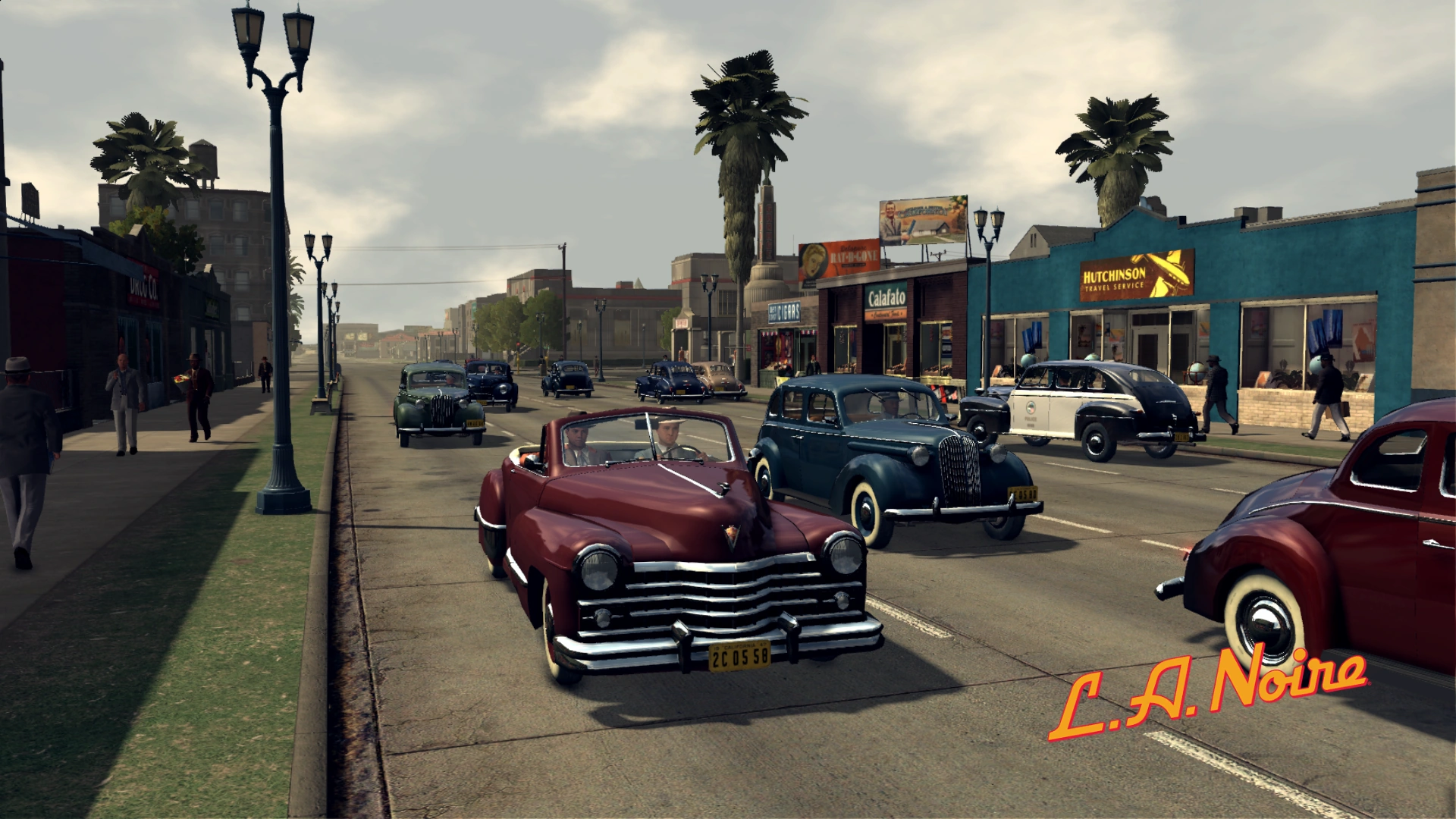 Cole Phelps and Roy Earle driving through the streets of Los Angeles