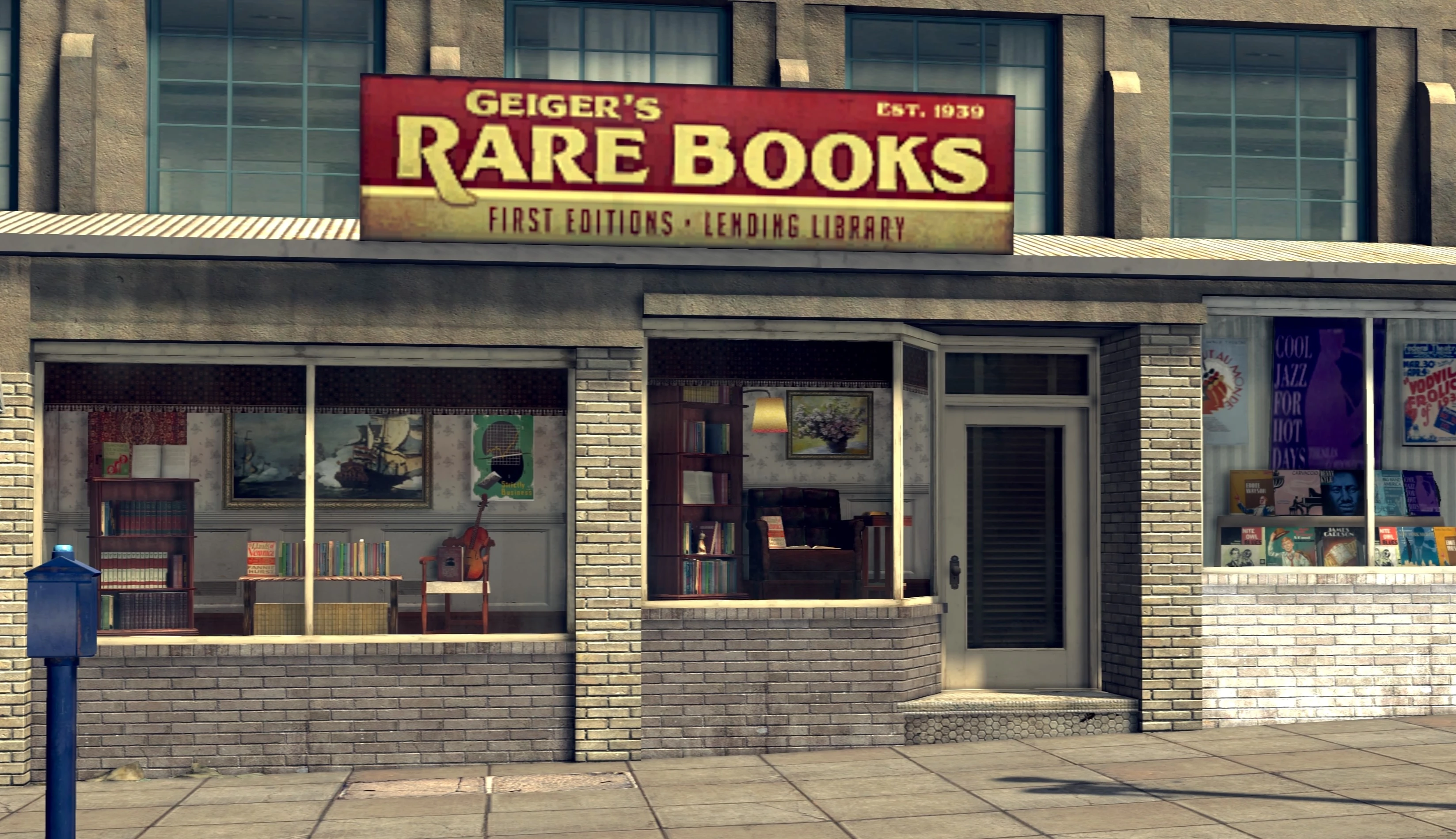 The store to the right of Frank Morgan's apartment building is one "Geiger's Rare Books," referencing Raymond Chandler's famous hardboiled detective novel The Big Sleep.
