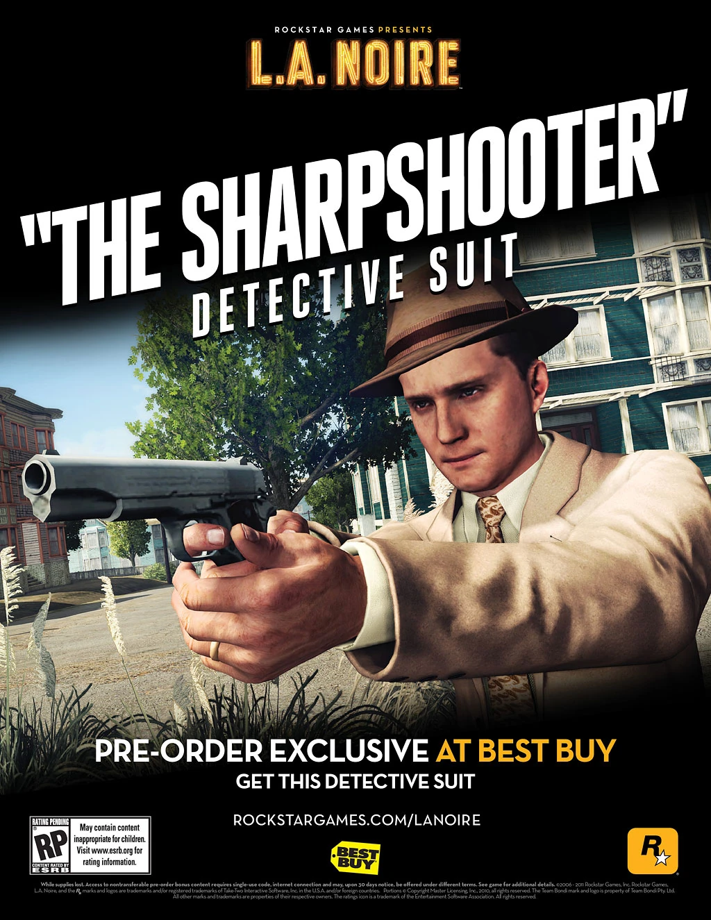 The suit enhances your aim with rifles and pistols. Always a worst case scenario for any detective working a case, there are of course those occasions for Cole Phelps when pursuing a suspect escalates to gunfire. In these tense shootouts, the Sharpshooter suit provides that extra aiming precision to take the criminal down.
